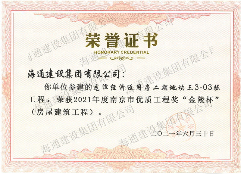 2021“金陵杯”-龍潭經濟適用房二期地塊三3-03棟工程