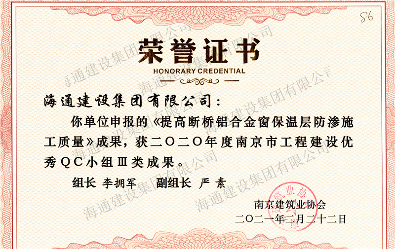 2021QC《提高斷橋鋁合金窗保溫層防滲施工質量》
