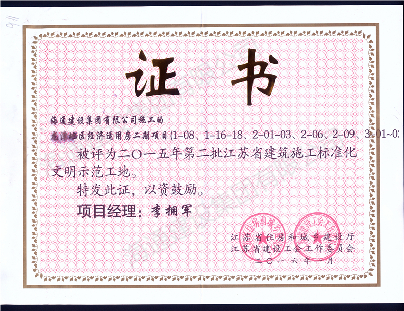 江蘇省文明工地2016龍潭地區經濟適用房二期項