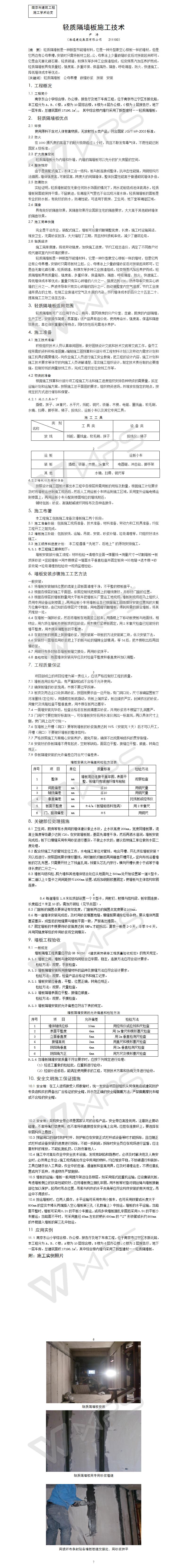 輕質隔墻板施工技術