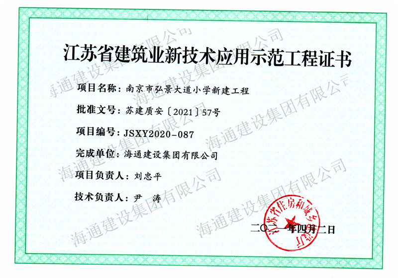 2021江蘇省建筑業(yè)新技術(shù)應(yīng)用示范工程證書
